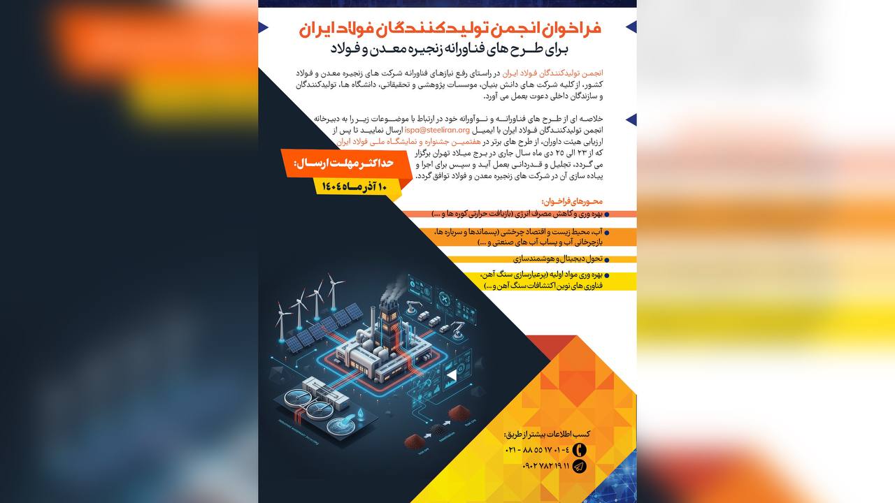 فراخوان انجمن تولیدکنندگان فولاد ایران برای طرح های فناورانه زنجیره معدن و فولاد